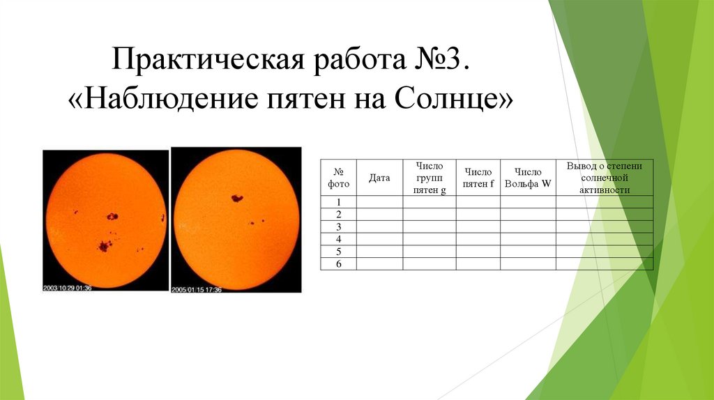 Практическая работа №3.«Наблюдение пятен на Солнце»
