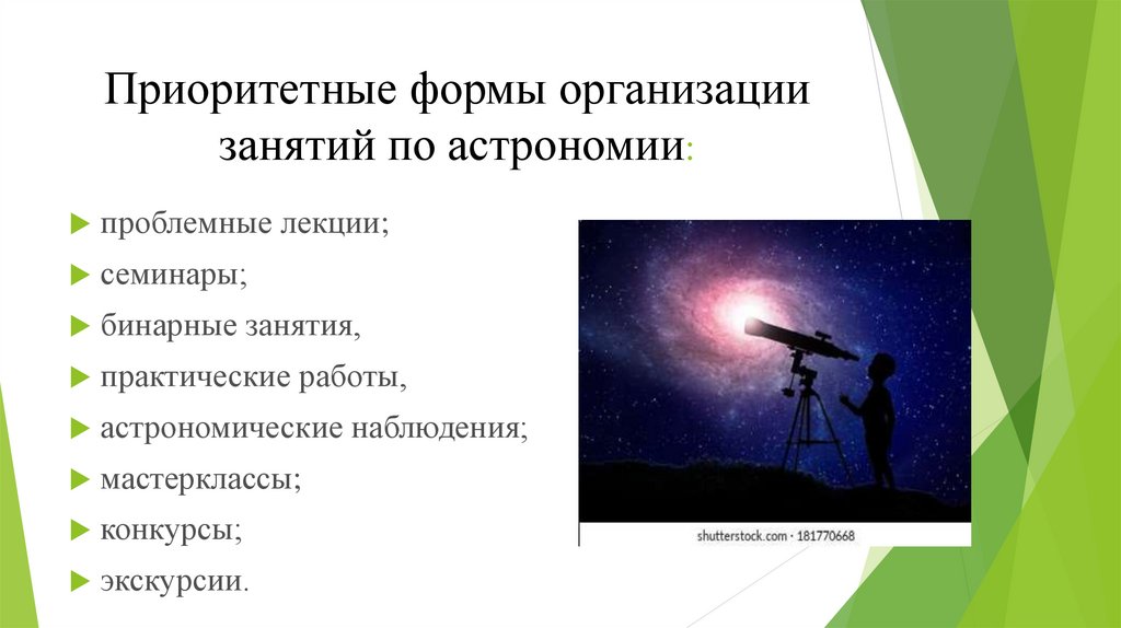 Приоритетные формы организациизанятий по астрономии: