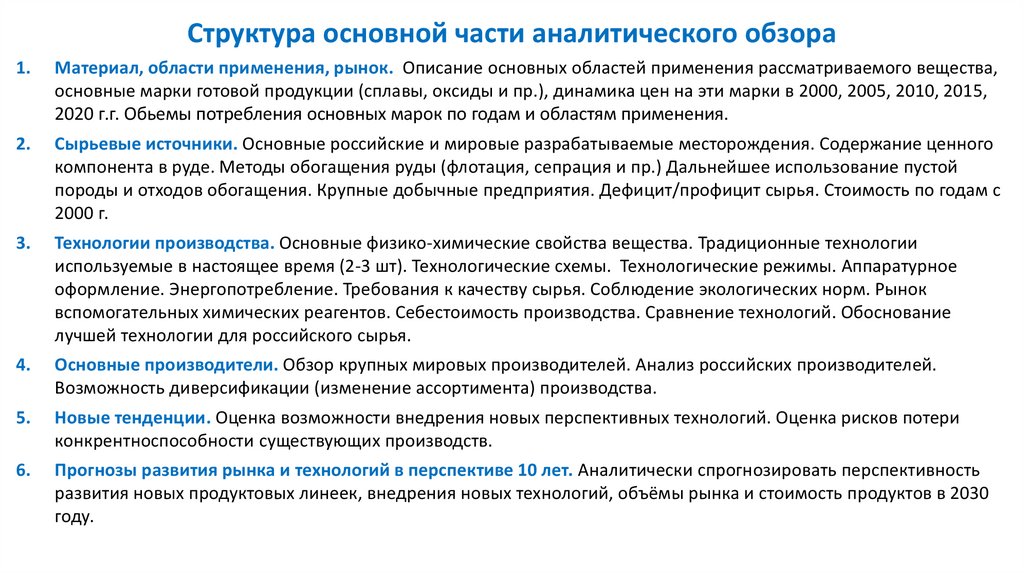 Структура основной части аналитического обзора1.