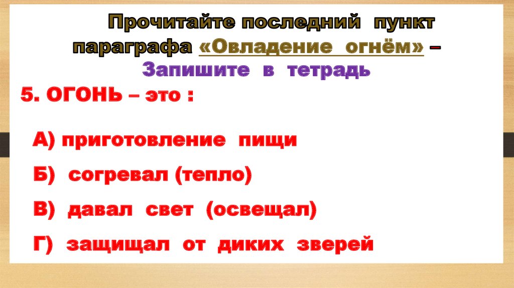 «Овладение огнём»Запишите в тетрадь
