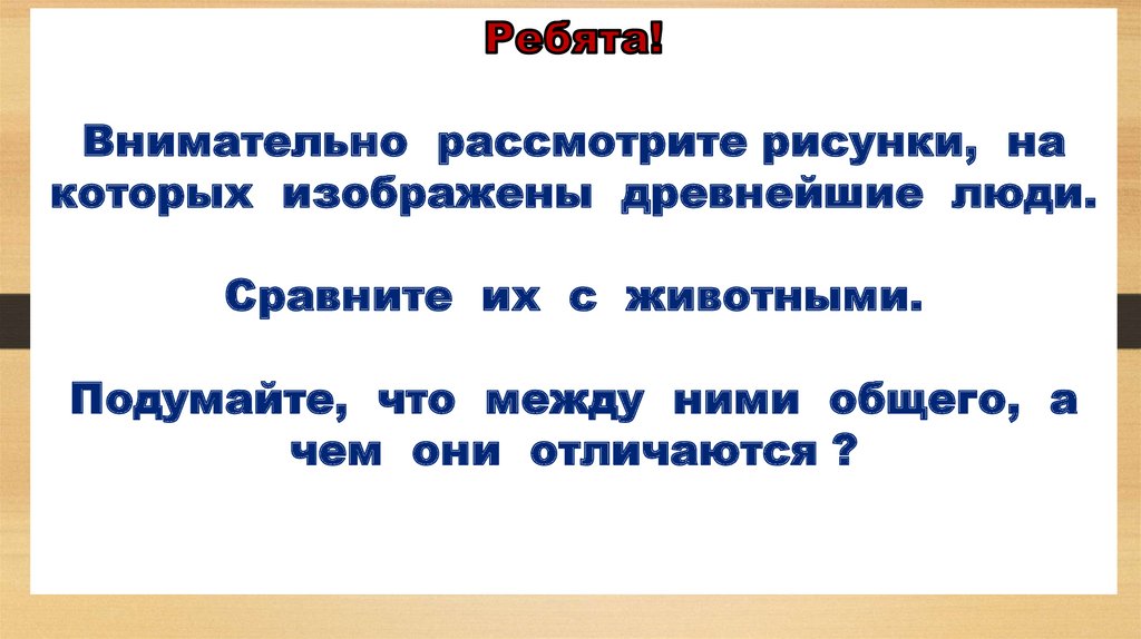 Внимательно рассмотрите рисунки, накоторых изображены древнейшие люди.