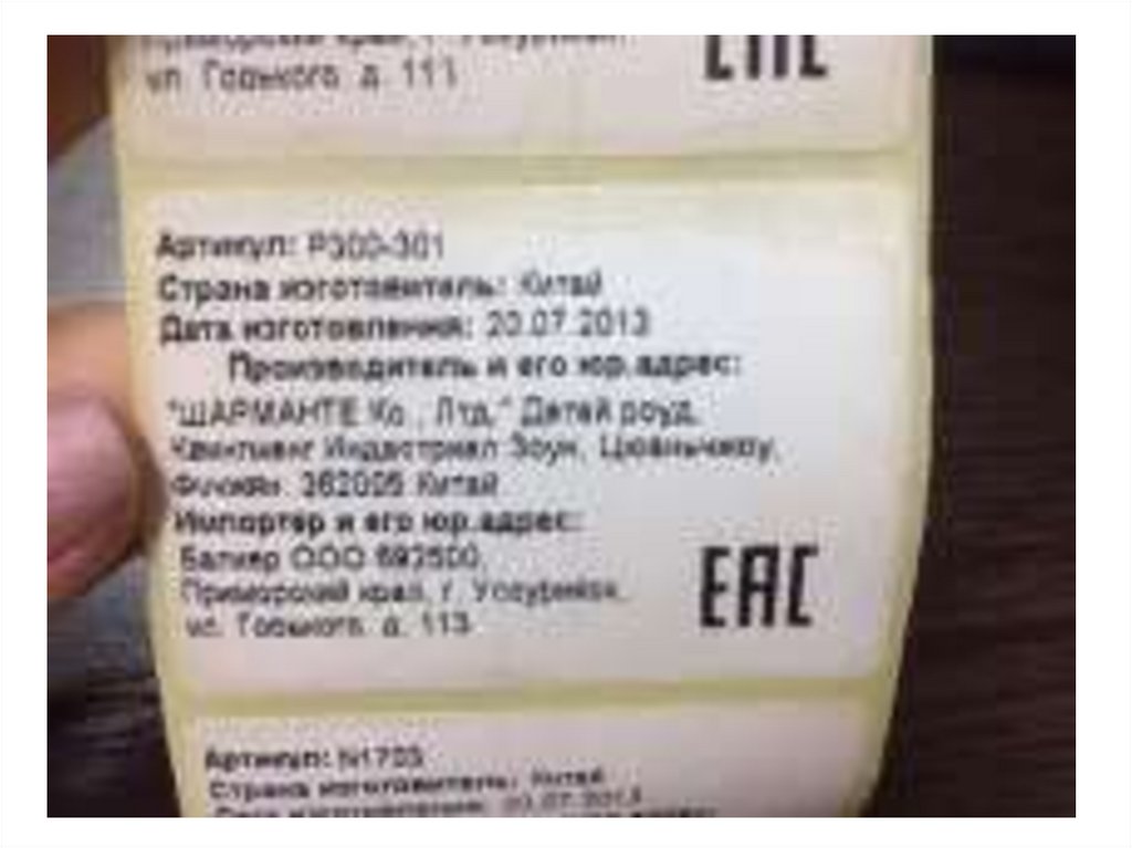 каждом товаре. Роль: Контроль качества продукции и его соответствие