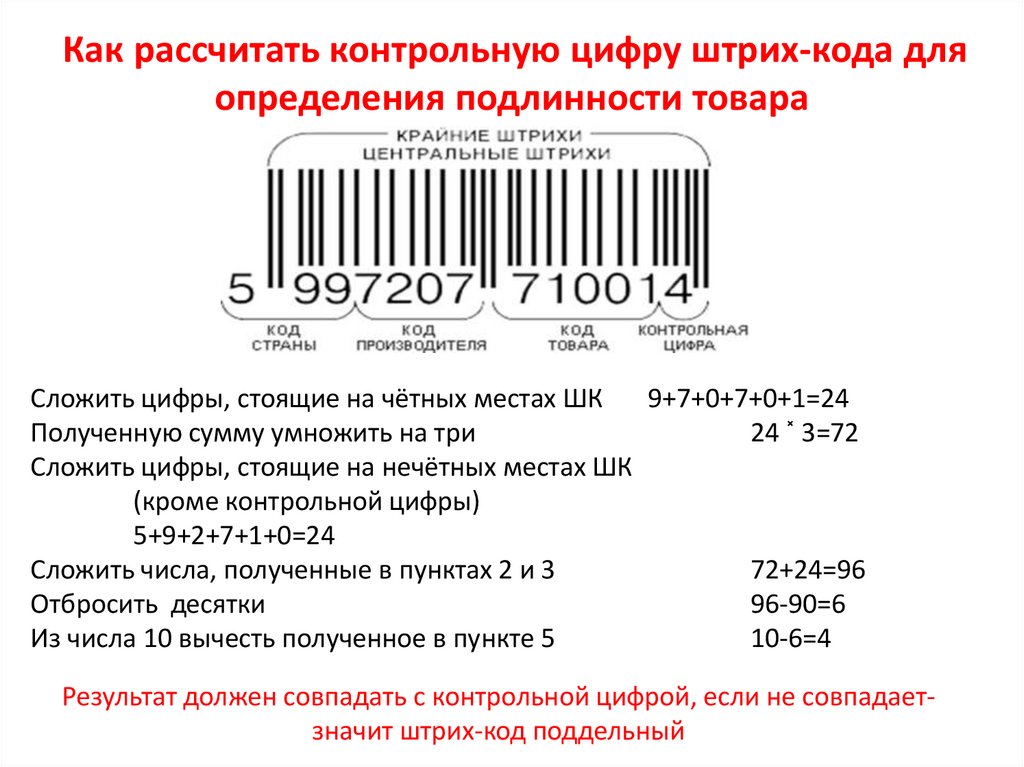 Как рассчитать контрольную цифру штрих-кода дляопределения подлинности товара