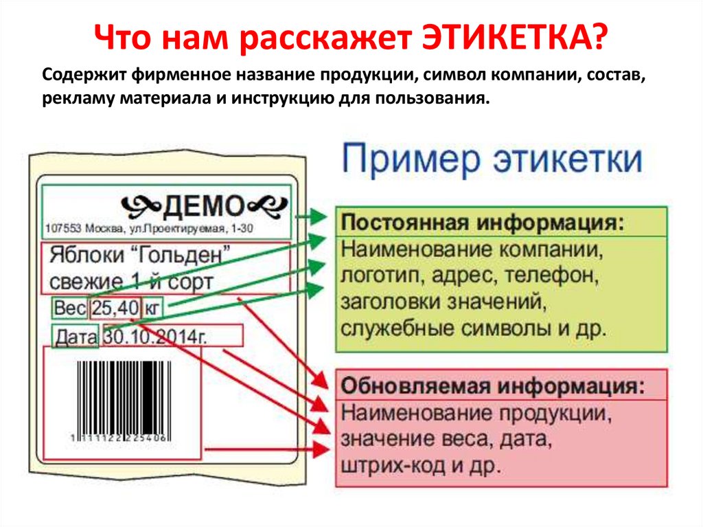 Что нам расскажет ЭТИКЕТКА?Содержит фирменное название продукции, символ компании, состав,