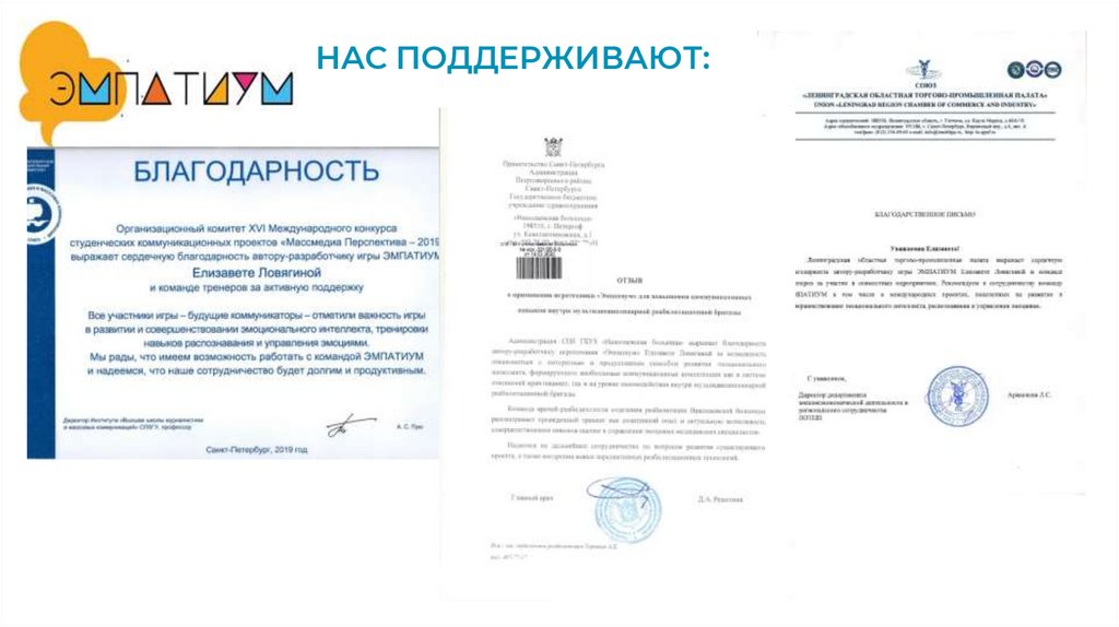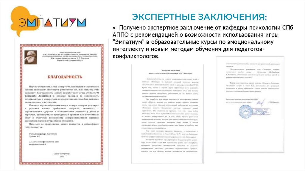 ЭКСПЕРТНЫЕ ЗАКЛЮЧЕНИЯ:• Получено экспертное заключение от кафедры психологии СПб
