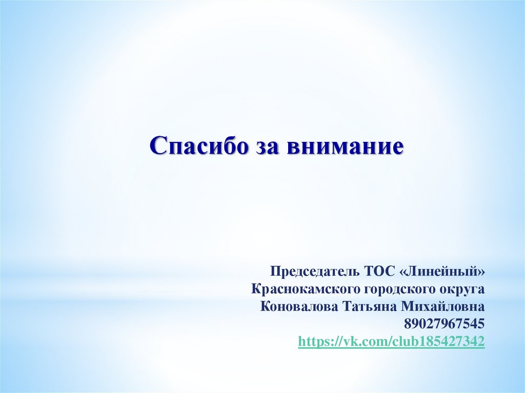Спасибо за вниманиеПредседатель ТОС «Линейный»