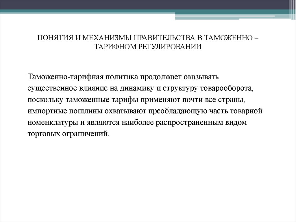 ПОНЯТИЯ И МЕХАНИЗМЫ ПРАВИТЕЛЬСТВА В ТАМОЖЕННО –ТАРИФНОМ РЕГУЛИРОВАНИИ