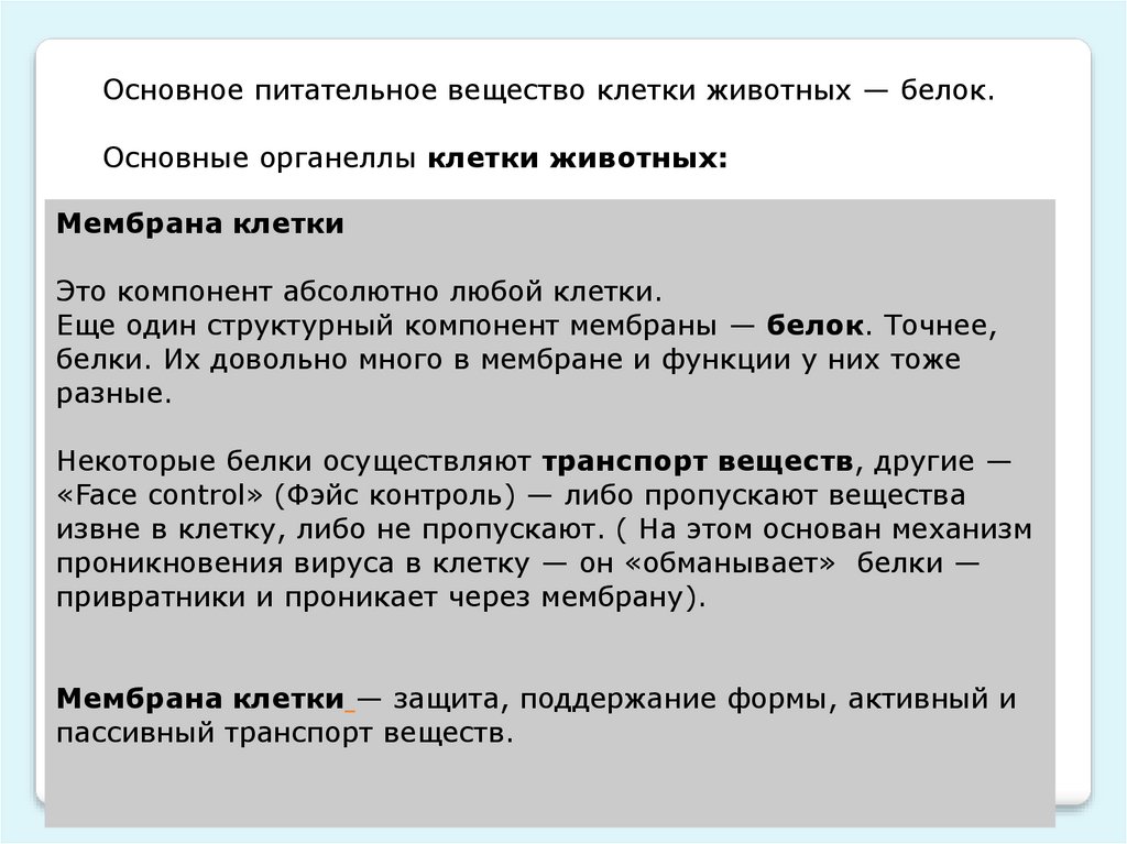 Основное питательное вещество клетки животных — белок.Основные органеллы клетки животных:
