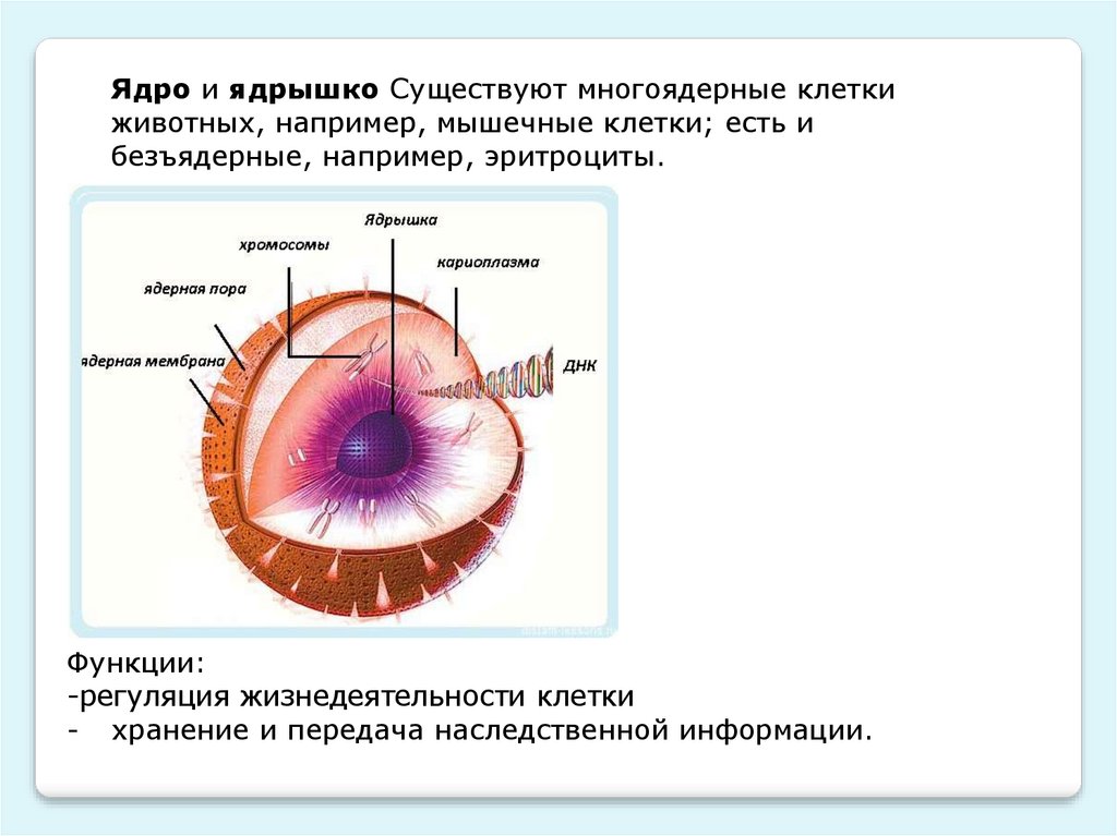 Ядро и ядрышко Существуют многоядерные клеткиживотных, например, мышечные клетки; есть и
