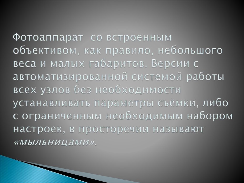 Сюда входят стереоскопические,панорамные, павильонные аппараты,