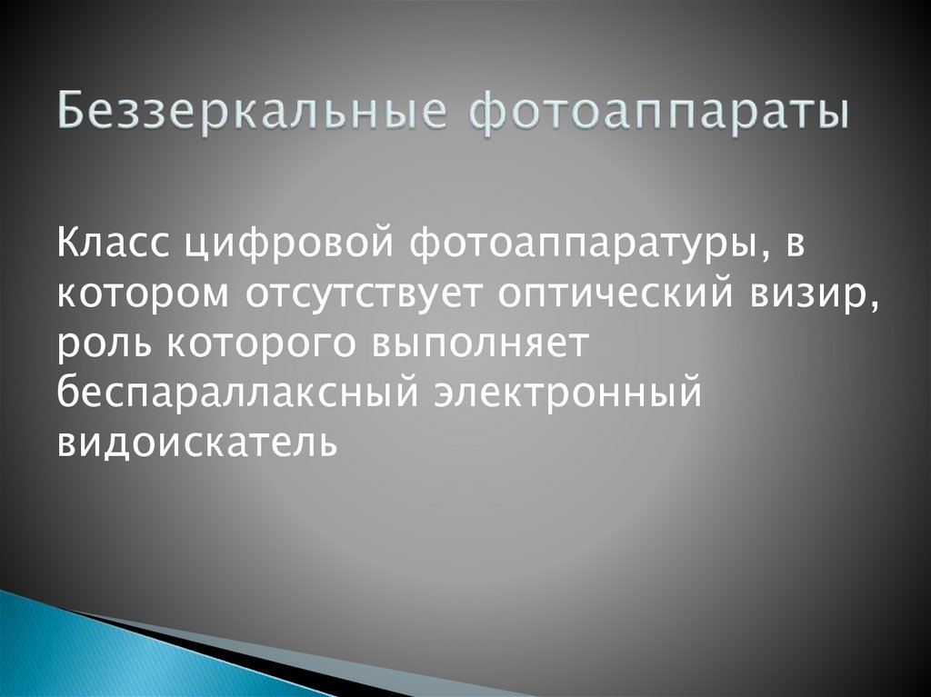 Класс цифровой фотоаппаратуры, вкотором отсутствует оптический визир,