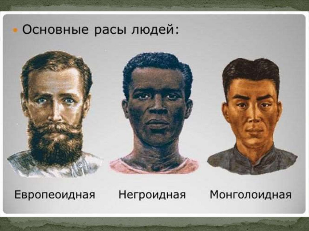 признаками): европеоидная, монголоидная,