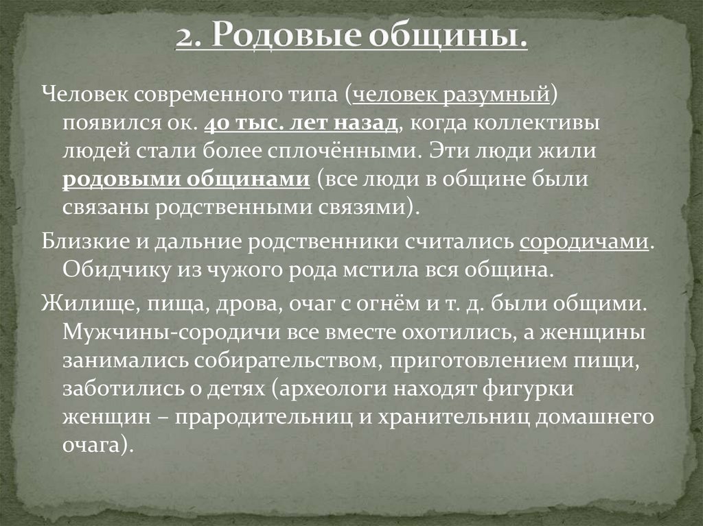 родовыми общинами (все люди в общине были