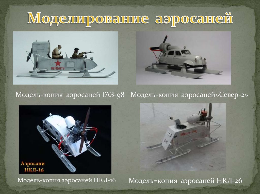 Модель-копия аэросаней ГАЗ-98 Модель-копия аэросаней»Север-2»Модель-копия аэросаней НКЛ-16