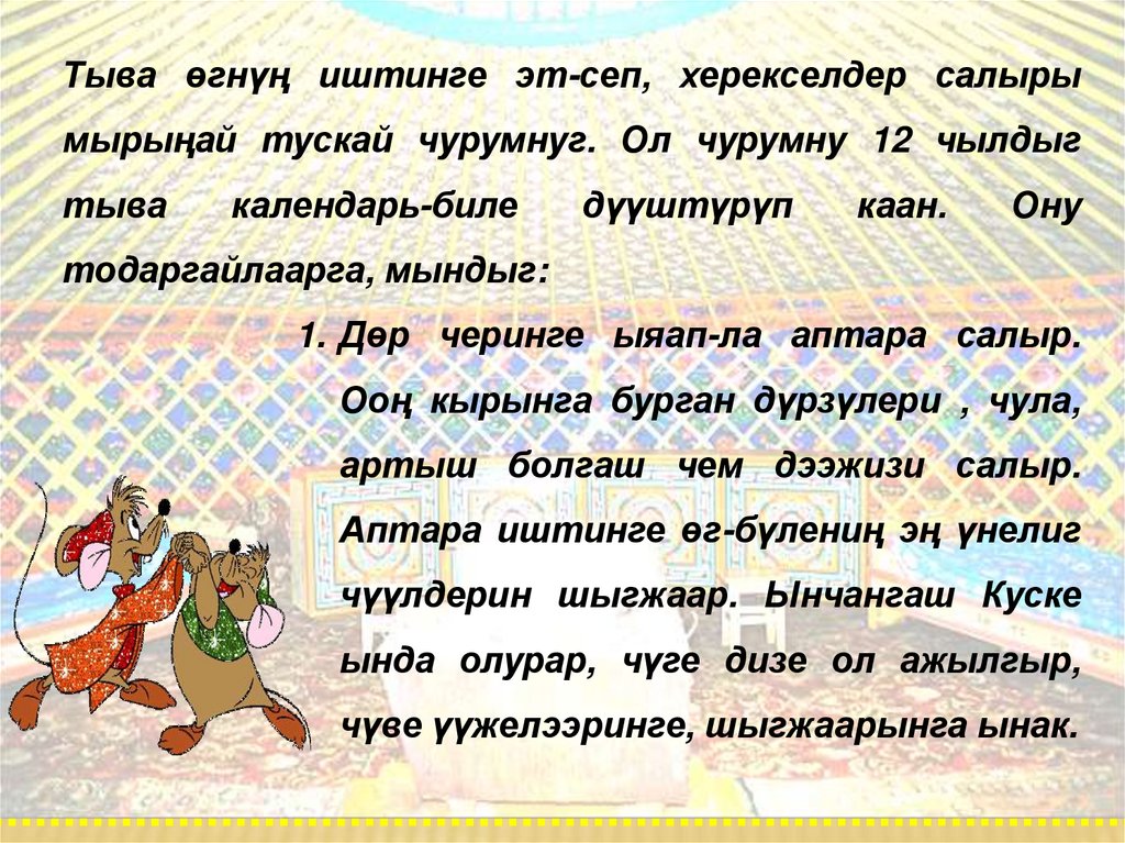 2. ӨГНҮҢ ИШТИ ТЫВА КАЛЕНДАРГА ДҮҮШКЕК. ДӨР