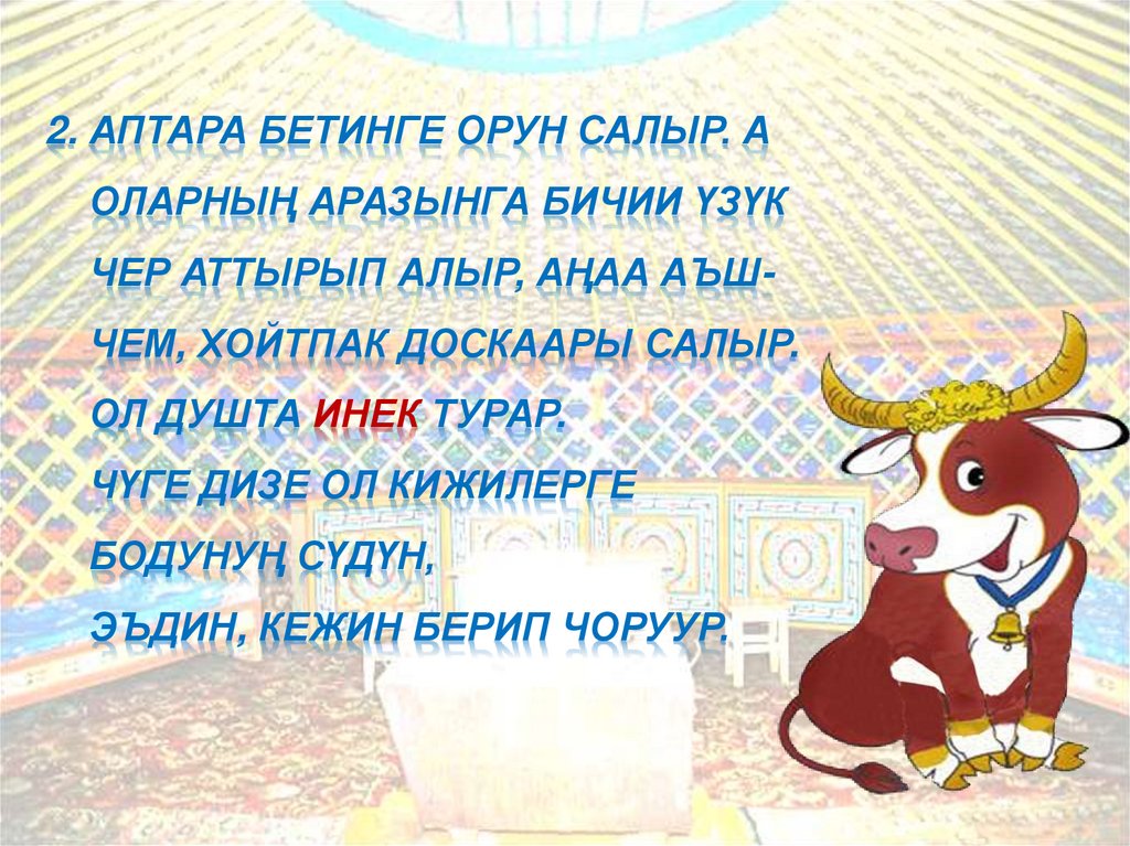 2. АПТАРА БЕТИНГЕ ОРУН САЛЫР. АОЛАРНЫҢ АРАЗЫНГА БИЧИИ ҮЗҮК