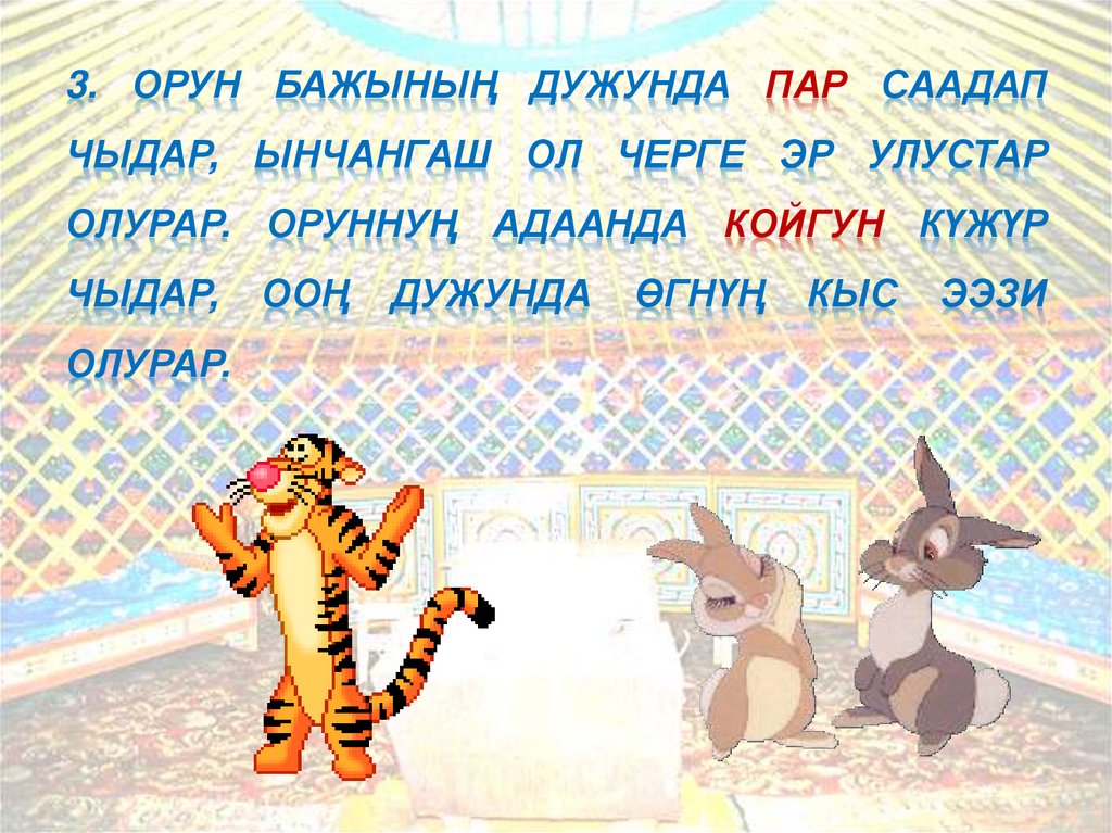 3. ОРУН БАЖЫНЫҢ ДУЖУНДА ПАР СААДАПЧЫДАР, ЫНЧАНГАШ ОЛ ЧЕРГЕ ЭР УЛУСТАР