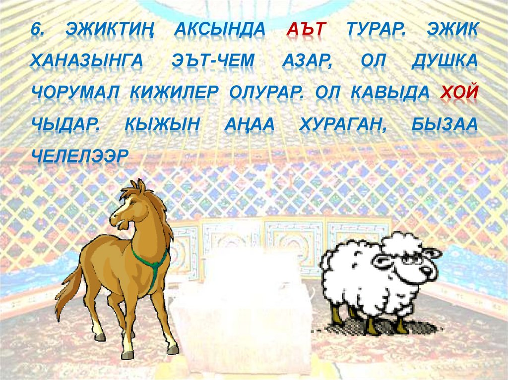 ИНЕК, ПАР, ТООЛАЙ, УЛУ, ЧЫЛАН, АЪТ, ХОЙ, МЕЧИ,