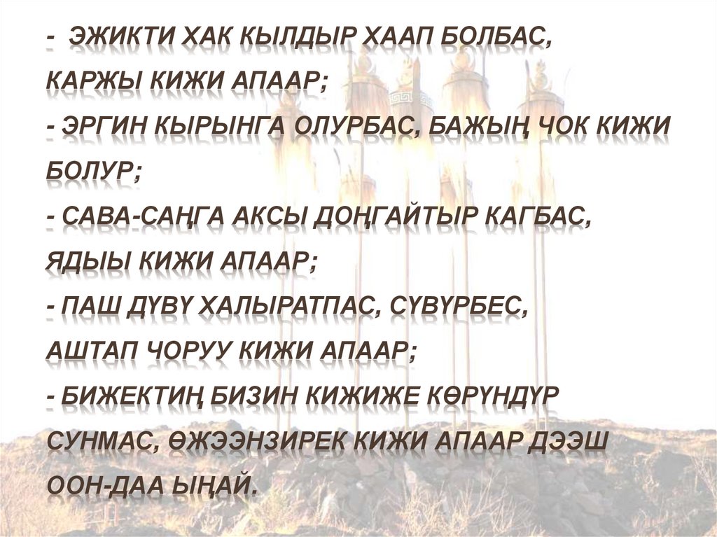 - ЭЖИКТИ ХАК КЫЛДЫР ХААП БОЛБАС,КАРЖЫ КИЖИ АПААР;