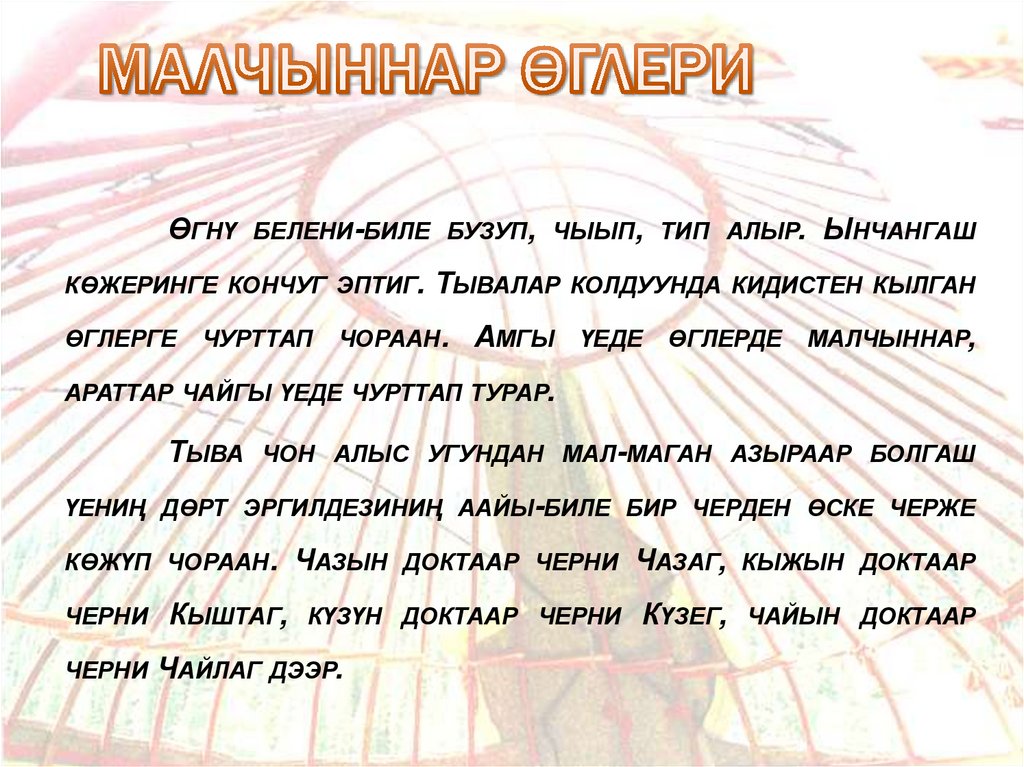 АМГЫ ҮЕДЕ ӨГЛЕРДЕ МАЛЧЫННАР,