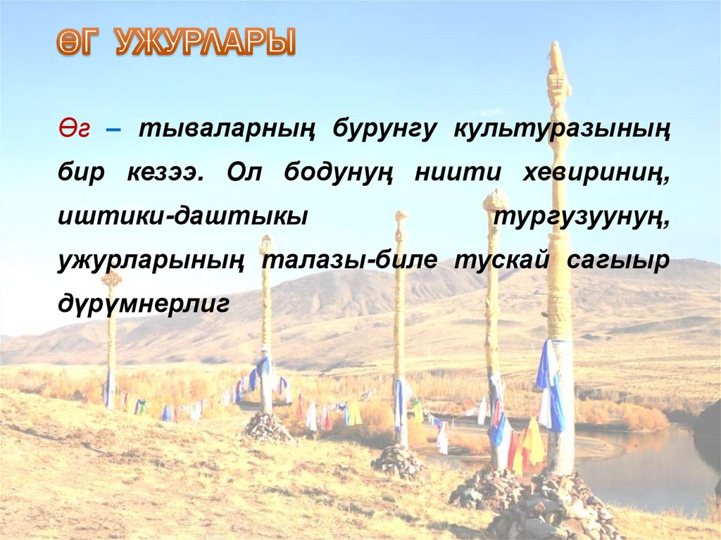 Өг – тываларның бурунгу культуразыныңбир кезээ. Ол бодунуң ниити хевириниң,