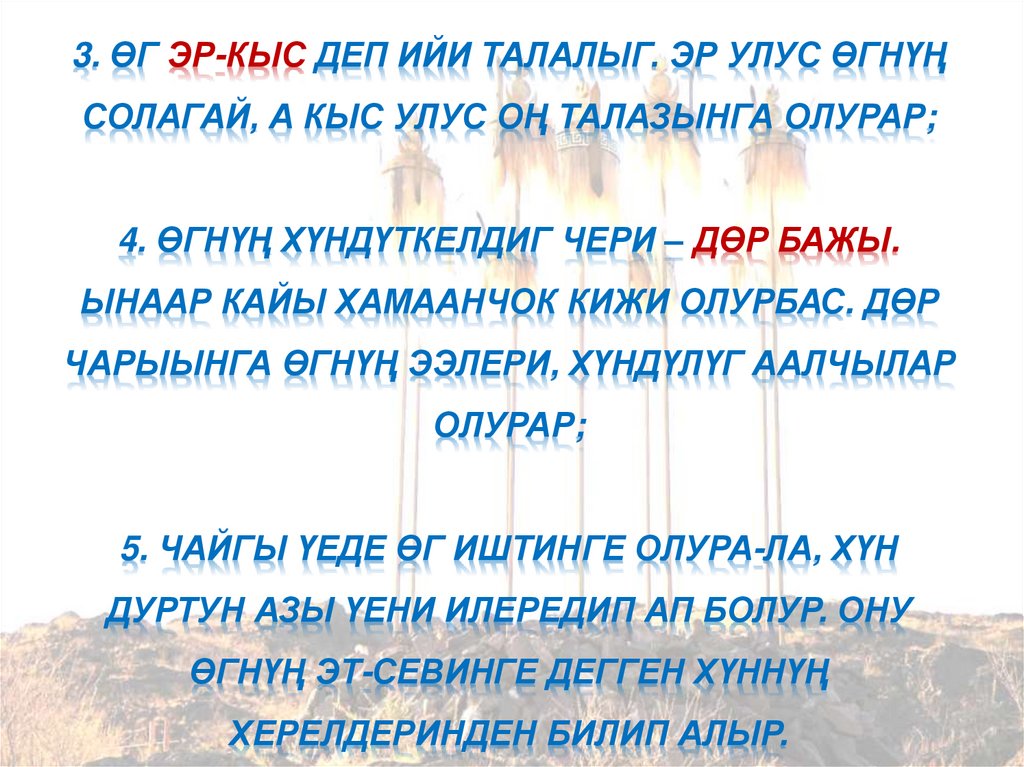 3. ӨГ ЭР-КЫС ДЕП ИЙИ ТАЛАЛЫГ. ЭР УЛУС ӨГНҮҢСОЛАГАЙ, А КЫС УЛУС ОҢ ТАЛАЗЫНГА ОЛУРАР;