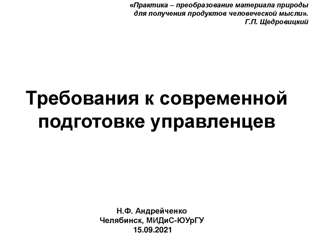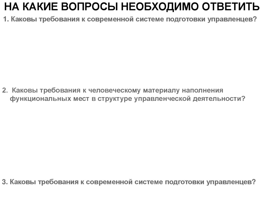 НА КАКИЕ ВОПРОСЫ НЕОБХОДИМО ОТВЕТИТЬ1. Каковы требования к современной системе подготовки управленцев?