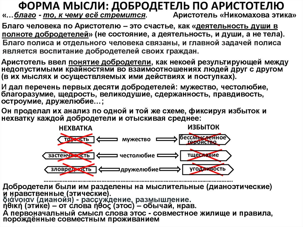 ФОРМА МЫСЛИ: ДОБРОДЕТЕЛЬ ПО АРИСТОТЕЛЮ«…благо - то, к чему всё стремится.