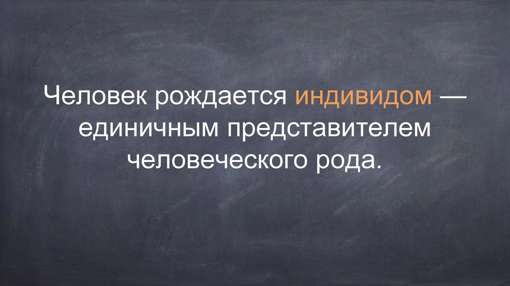Человек рождается индивидом —единичным представителем