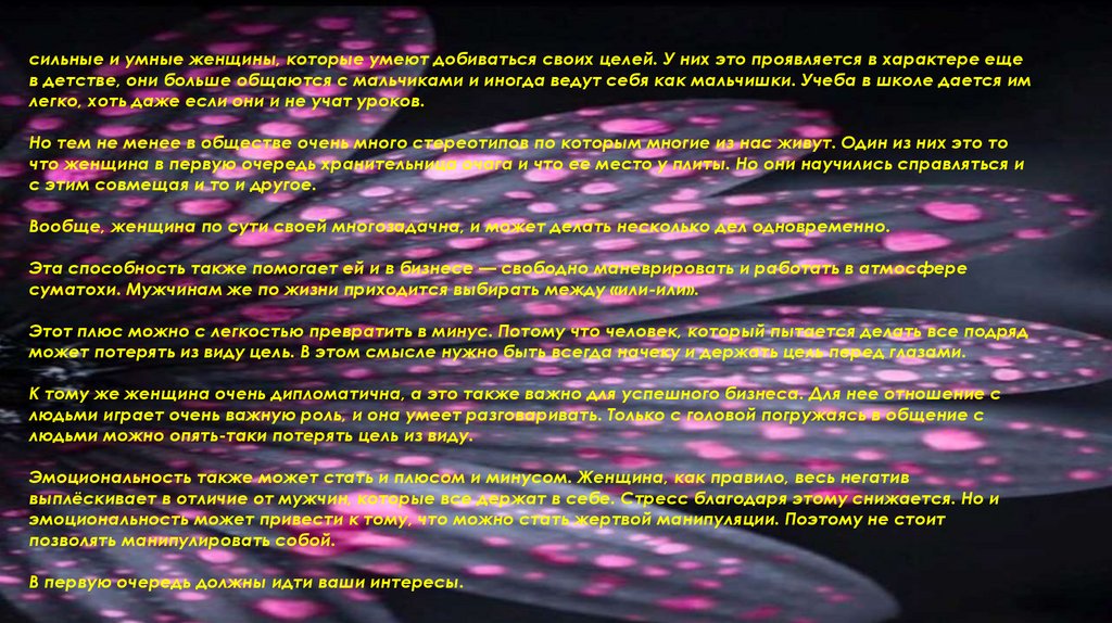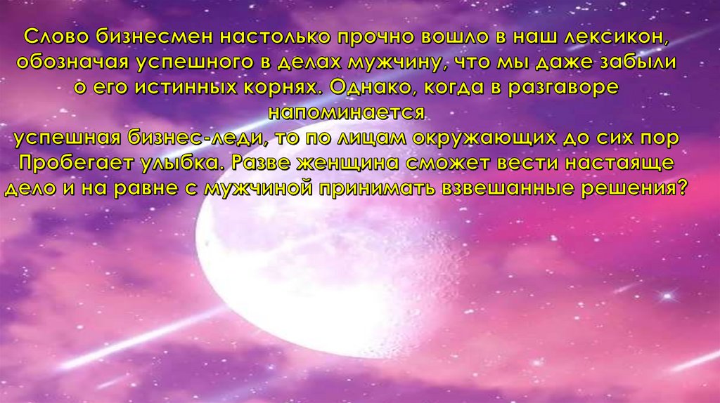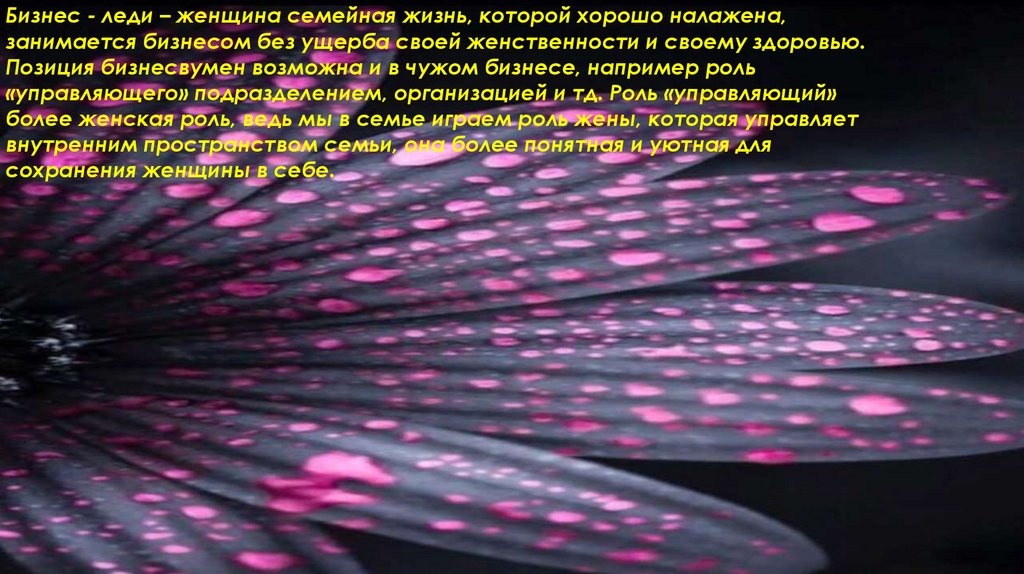 Бизнес - леди – женщина семейная жизнь, которой хорошо налажена,занимается бизнесом без ущерба своей женственности и своему здоровью.