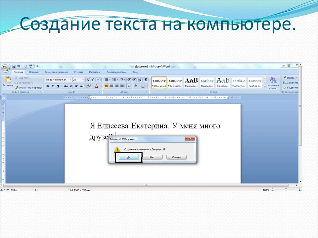 Создание текста на компьютере.Включи компьютер. Найди на рабочем столе