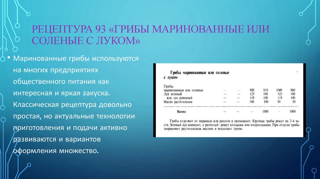 РЕЦЕПТУРА 93 «ГРИБЫ МАРИНОВАННЫЕ ИЛИСОЛЕНЫЕ С ЛУКОМ»