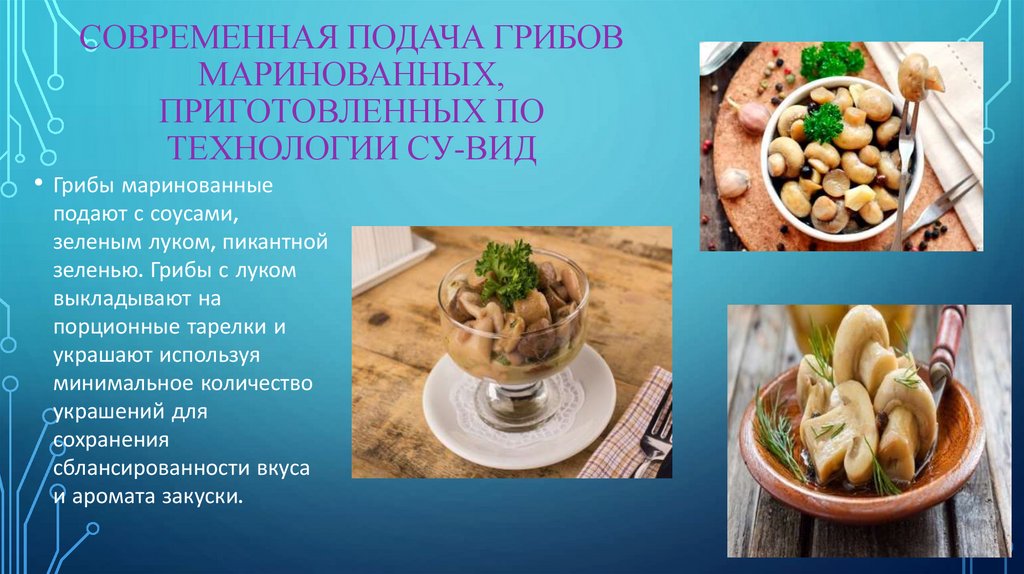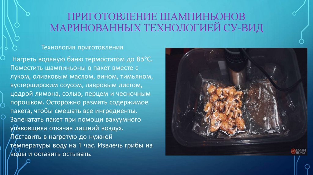 ПРИГОТОВЛЕНИЕ ШАМПИНЬОНОВМАРИНОВАННЫХ ТЕХНОЛОГИЕЙ СУ-ВИД