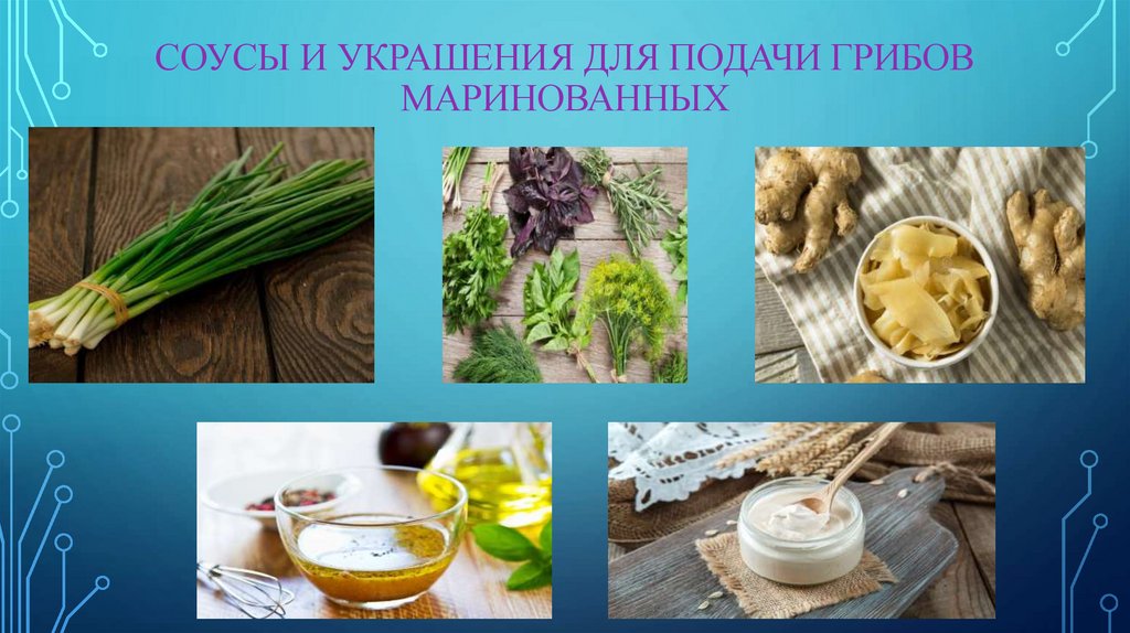 СОУСЫ И УКРАШЕНИЯ ДЛЯ ПОДАЧИ ГРИБОВМАРИНОВАННЫХ