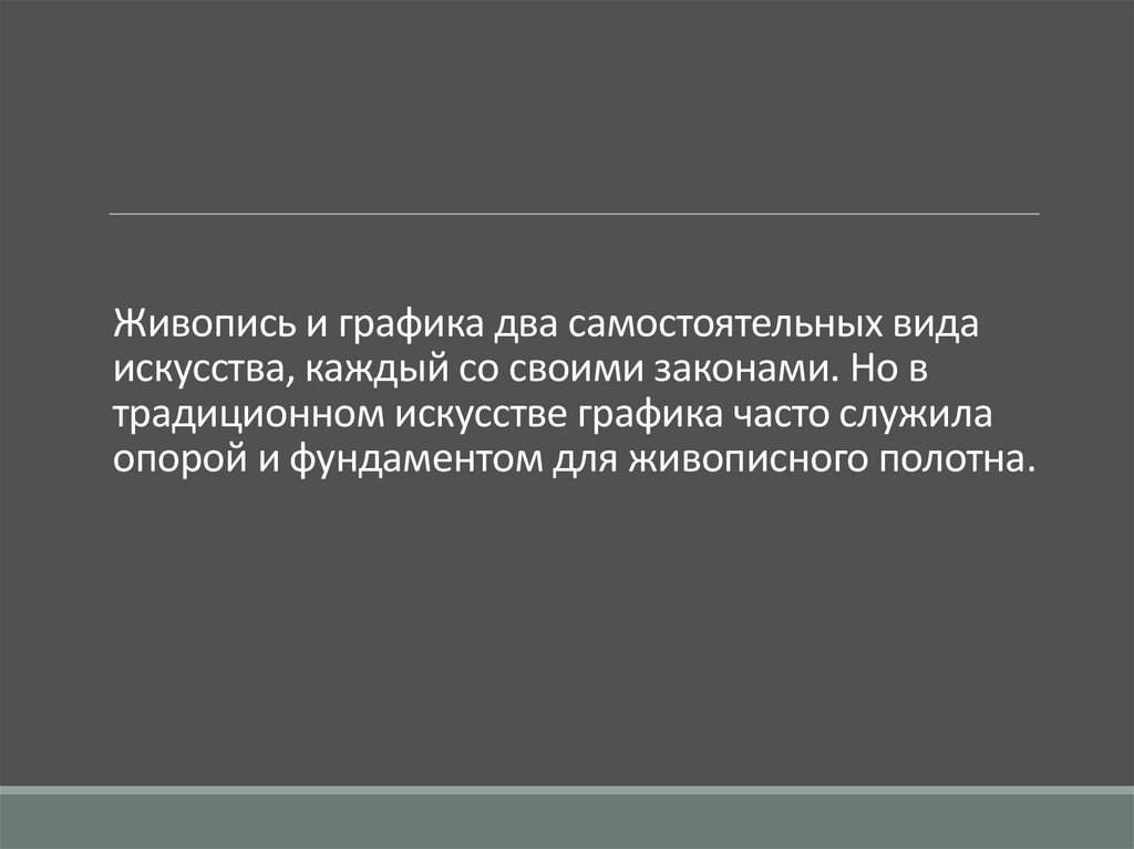 Живопись и графика два самостоятельных видаискусства, каждый со своими законами. Но в