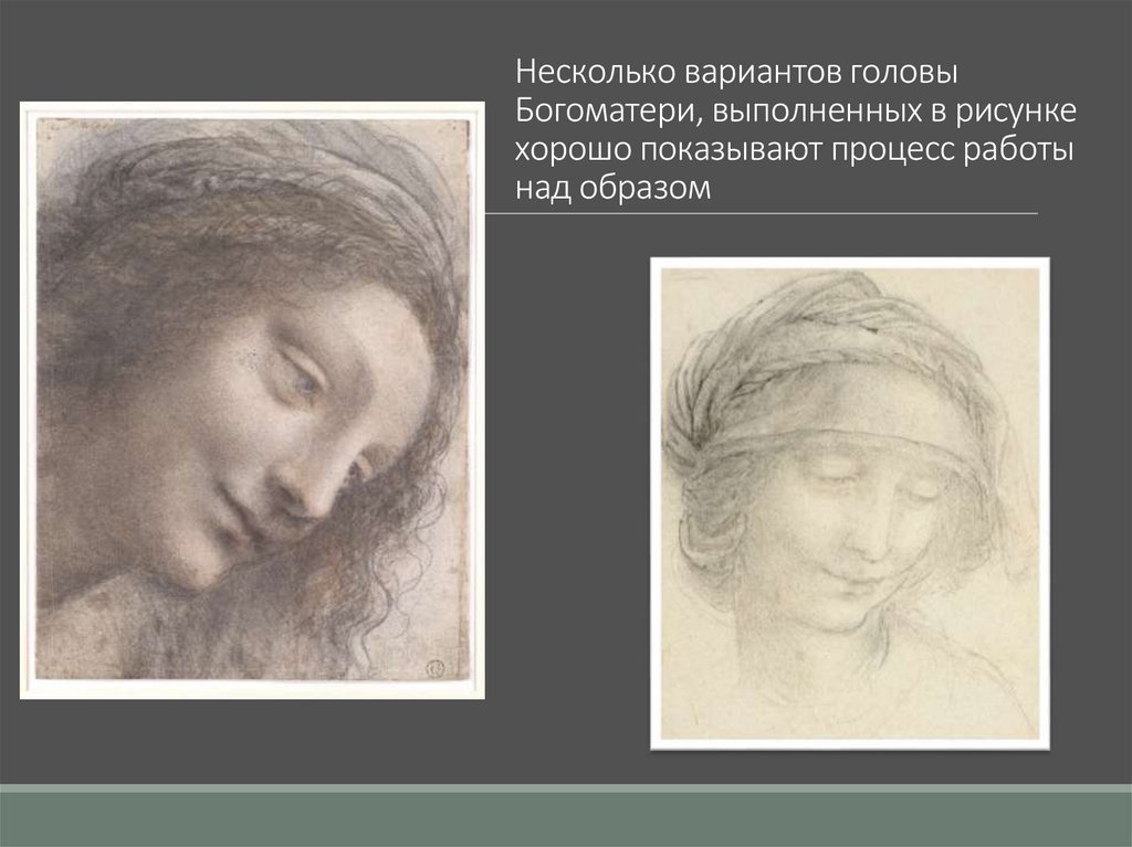 Несколько вариантов головыБогоматери, выполненных в рисунке