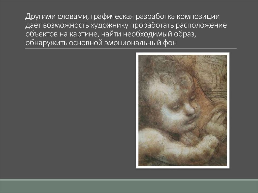 Другими словами, графическая разработка композициидает возможность художнику проработать расположение