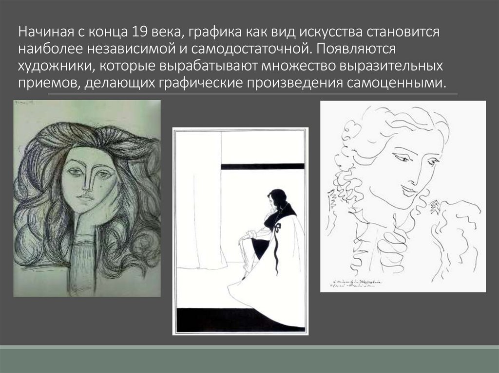 Начиная с конца 19 века, графика как вид искусства становитсянаиболее независимой и самодостаточной. Появляются