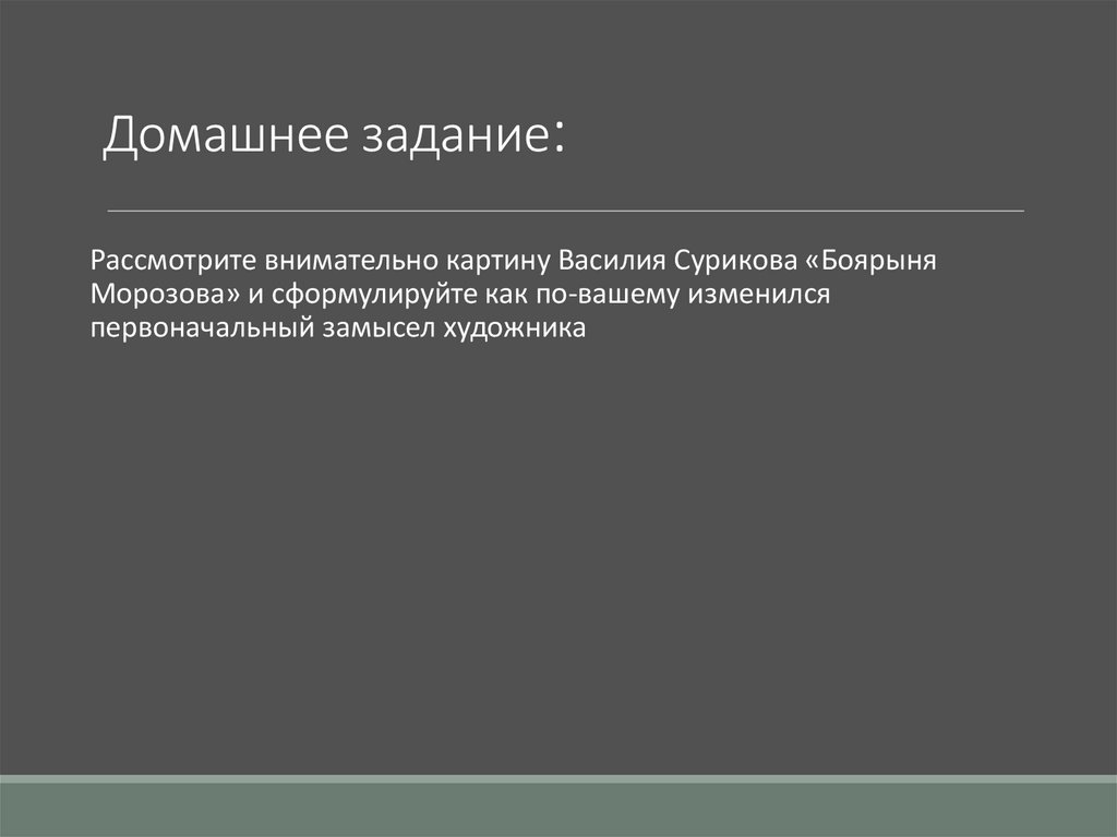 Домашнее задание:Рассмотрите внимательно картину Василия Сурикова «Боярыня