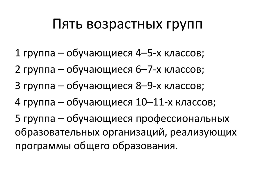 Пять возрастных групп1 группа – обучающиеся 4–5-х классов;