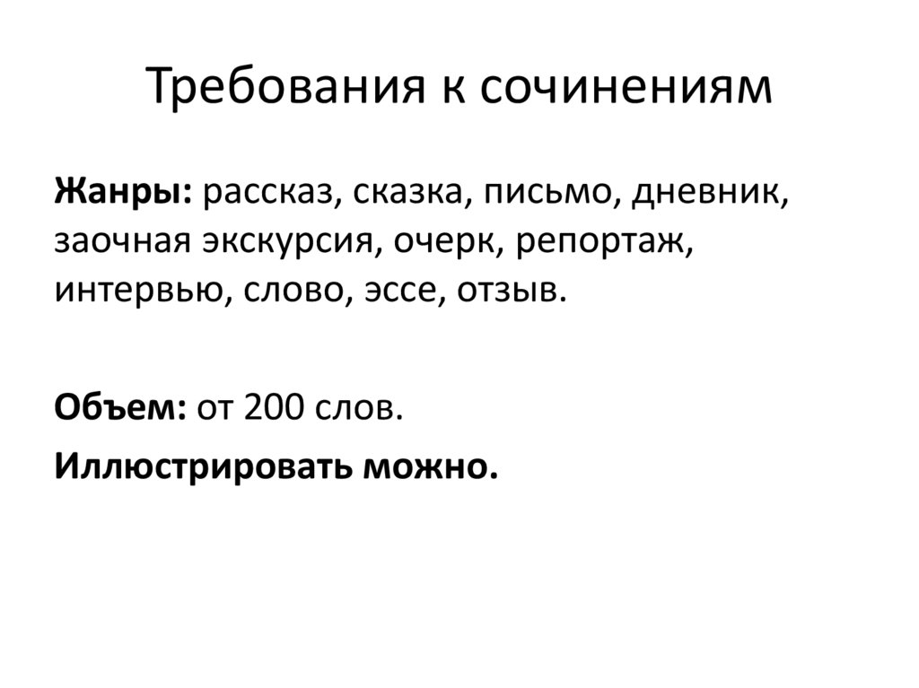 Требования к сочинениямЖанры: рассказ, сказка, письмо, дневник,