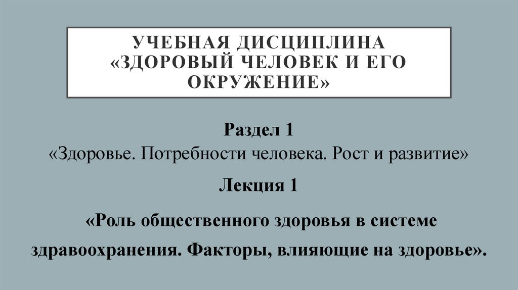 УЧЕБНАЯ ДИСЦИПЛИНА«ЗДОРОВЫЙ ЧЕЛОВЕК И ЕГО