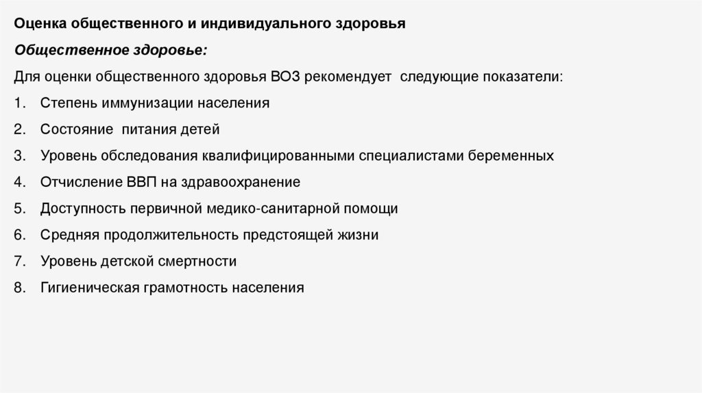 Оценка общественного и индивидуального здоровьяОбщественное здоровье: