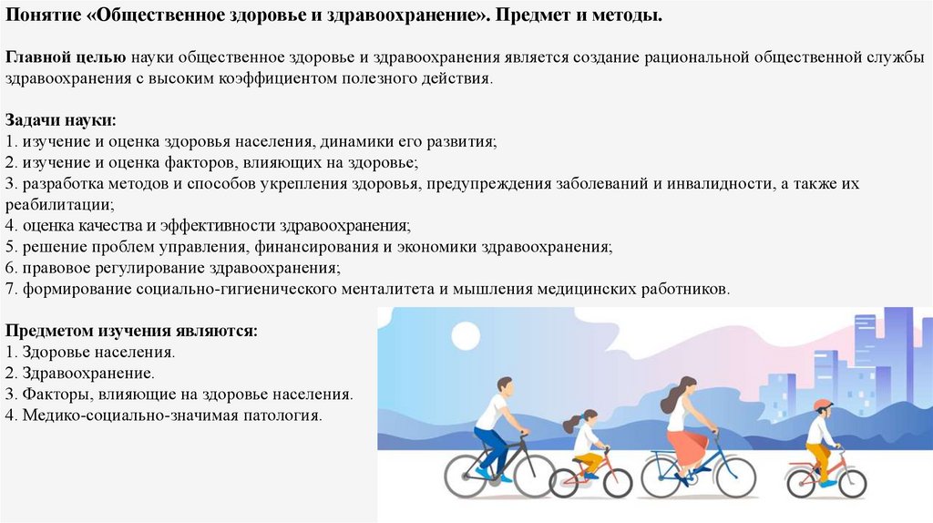 отдельного человека, но и населения: групп людей, их сообществ, т.е. общественного здоровья, и применении