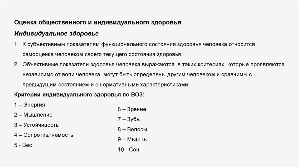 Оценка общественного и индивидуального здоровьяИндивидуальное здоровье