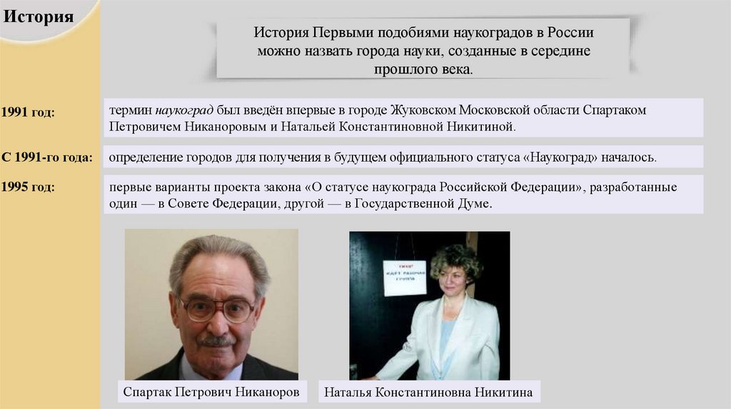 первые варианты проекта закона «О статусе наукограда Российской Федерации», разработанные