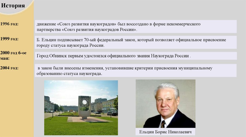 Город Обнинск первым удостоился официального звания Наукограда России .