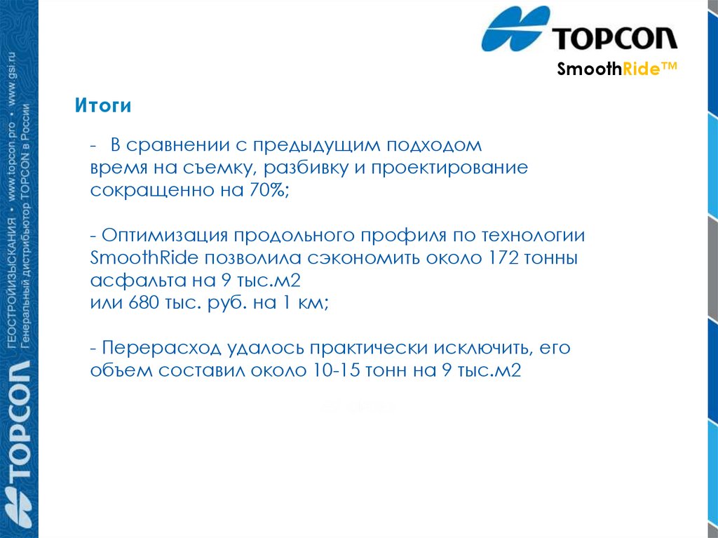 Технология ремонта автомобильных дорог Topcon SmoothRide™Теория и опыт применения