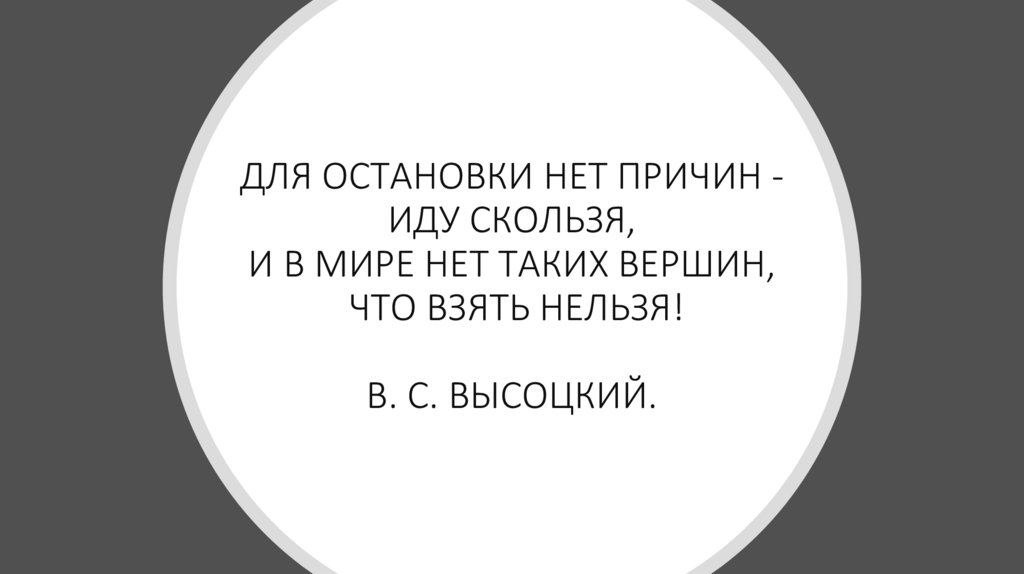 ДЛЯ ОСТАНОВКИ НЕТ ПРИЧИН ИДУ СКОЛЬЗЯ,И В МИРЕ НЕТ ТАКИХ ВЕРШИН,