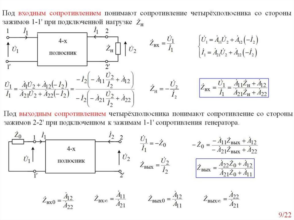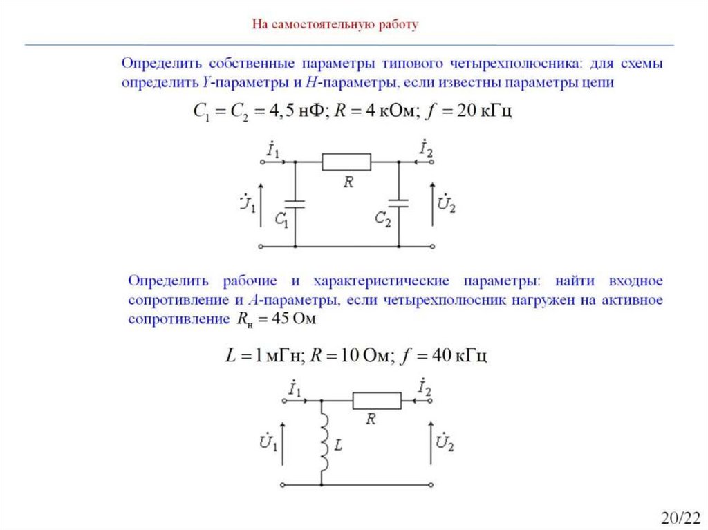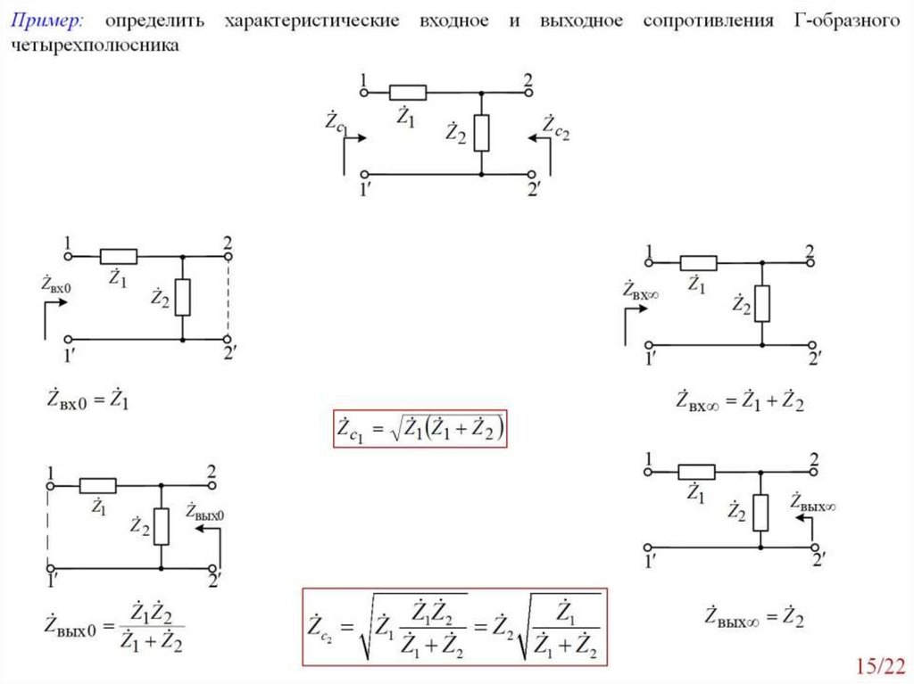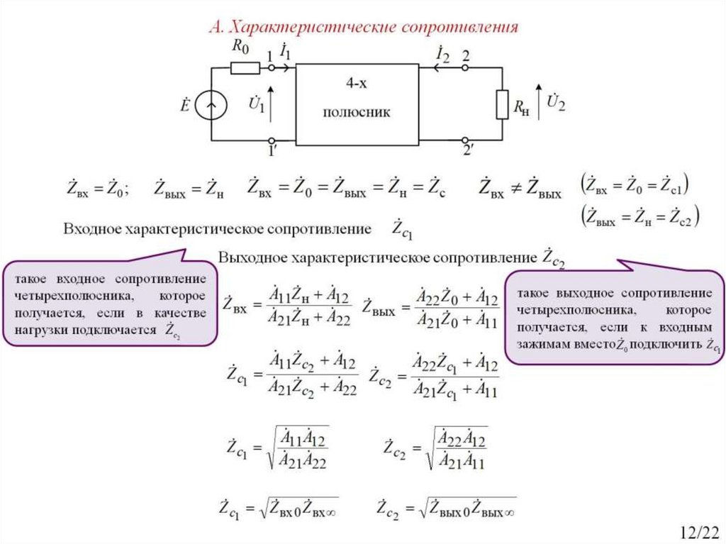 Рабочие и характеристические параметры четырехполюсника. Занятие №22